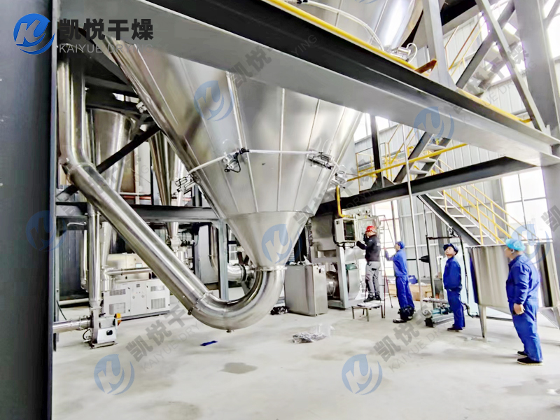 2、雾化:喷雾干燥机的雾化系统必须确保雾滴大小分布均匀,这是至关重要的。因为这样才能确保产品质量的合格率。