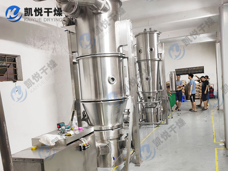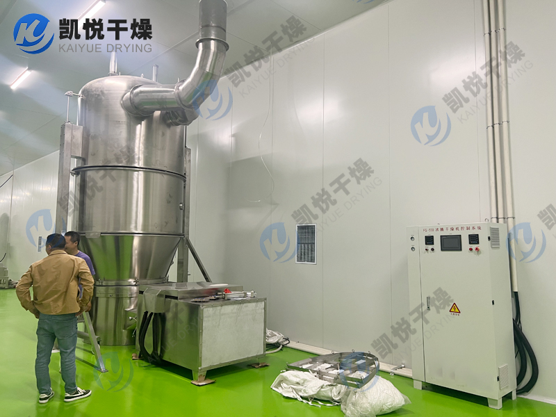 物料粉末粒子,在原料容器(流化床)中呈环形流化状态,受到经过净化后的加热空气预热和混合,将粘合剂溶液雾化喷入,使若干粒子聚集成含有粘合剂的团粒,由于热空气对物料的不断干燥,使团粒中水分蒸发,粘合剂凝固,此过程不断重复进行,形成的、均匀的多微孔球状颗粒。