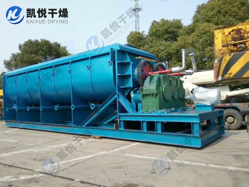 空心轴上密集排列着楔型中空浆叶,热介质经空心轴流经浆叶。单位有效容积内传热面积很大,热介质温度从-40℃到320℃,可以是水蒸汽,也可以是液体型:如热水、导热油等。间接传导加热,没有携带空气带走热量,热量均用来加热物料。热量损失仅为通过器体保温层向环境的散热。楔型浆叶传热面具有自清洁功能。物料颗粒与楔型面的相对运动产生洗刷作用,能够洗刷掉楔型面上附着物料,使运转中一直保持着清洁的传热面。浆叶干燥机的壳体为Ω型,壳体内一般安排二到四根空心搅拌轴。壳体有密封端盖与上盖,防止物料粉尘外泄而充分发挥作用。