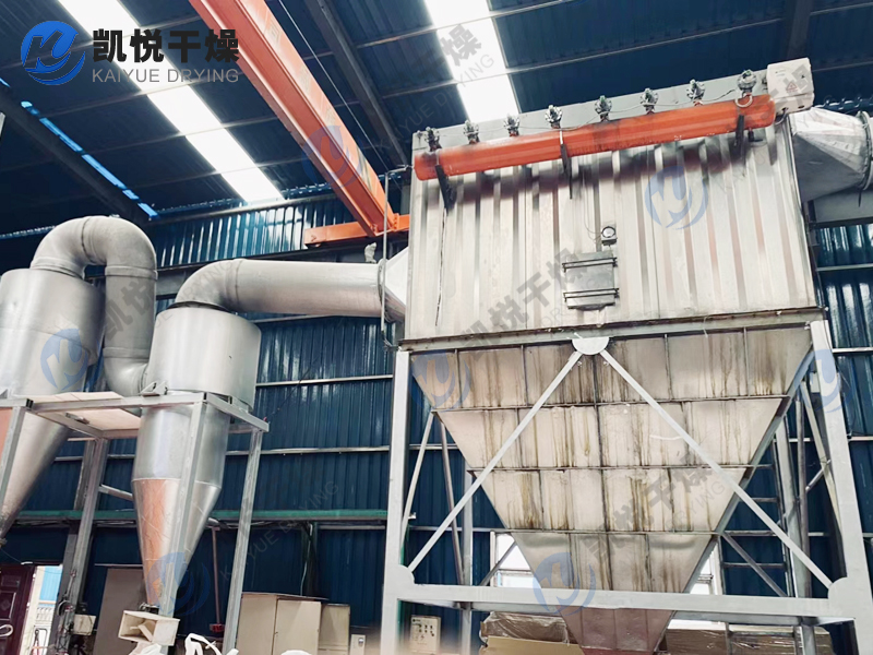 粒度分级:在干燥主机的上部设置环形挡板,此被称为闪蒸干燥机分级器。当物料运动经过该分级器时变会受到离心力的作用,呈现不同旋转半径螺旋上升的趋势。粒径较小的物料从分级器的内孔排出;颗粒较大的物料被留在干燥室内继续粉碎,待达到标准粒度从内孔排出。