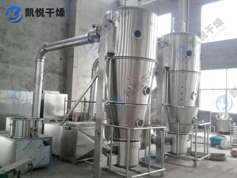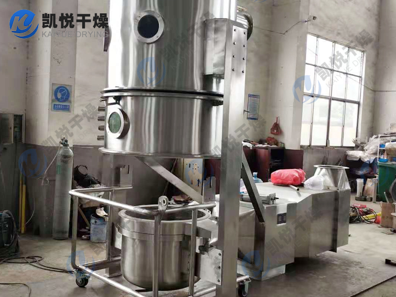 物料粉末粒子,在原料容器(流化床)中呈环形流化状态,受到经过净化后的加热空气预热和混合,将粘合剂溶液雾化喷入,使若干粒子聚集成含有粘合剂的团粒,由于热空气对物料的不断干燥,使团粒中水分蒸发,粘合剂凝固,此过程不断重复进行,形成的、均匀的多微孔球状颗粒。