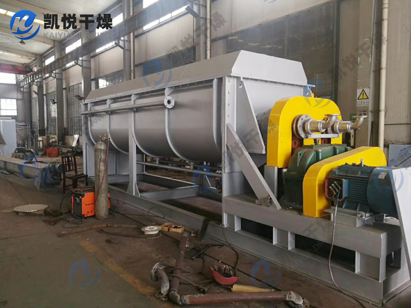 空心轴上密集排列着楔型中空浆叶,热介质经空心轴流经浆叶。单位有效容积内传热面积很大,热介质温度从-40℃到320℃,可以是水蒸汽,也可以是液体型:如热水、导热油等。间接传导加热,没有携带空气带走热量,热量均用来加热物料。热量损失仅为通过器体保温层向环境的散热。楔型浆叶传热面具有自清洁功能。物料颗粒与楔型面的相对运动产生洗刷作用,能够洗刷掉楔型面上附着物料,使运转中一直保持着清洁的传热面。浆叶干燥机的壳体为Ω型,壳体内一般安排二到四根空心搅拌轴。壳体有密封端盖与上盖,防止物料粉尘外泄而充分发挥作用。