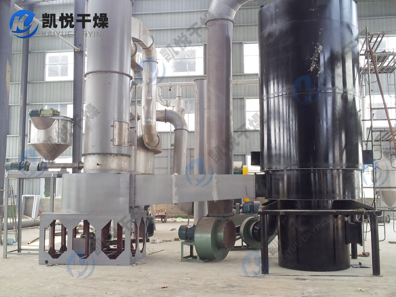粒度分级:在干燥主机的上部设置环形挡板,此被称为闪蒸干燥机分级器。当物料运动经过该分级器时变会受到离心力的作用,呈现不同旋转半径螺旋上升的趋势。粒径较小的物料从分级器的内孔排出;颗粒较大的物料被留在干燥室内继续粉碎,待达到标准粒度从内孔排出。